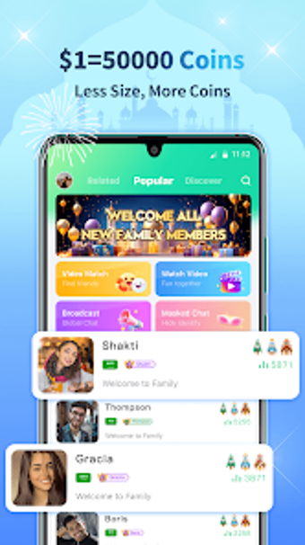 تشمل الميزات الرئيسية نظام عائلي قوي يبسط الدعوات والإدارة، ومهام عائلية مثيرة تكافئ المشاركة، وأدوات متنوعة لتنظيم التجمعات العائلية. يمكن للمستخدمين أيضًا الاستمتاع بألعاب اجتماعية كلاسيكية مثل UNO وLUDO وDomino، بينما تتيح ميزة القناع المبتكرة إجراء محادثات مثيرة مع الغرباء. بالإضافة إلى ذلك، يدعم FamyStar مشاهدة مقاطع فيديو YouTube بشكل جماعي، مما يعزز التجربة المشتركة بين أفراد العائلة.